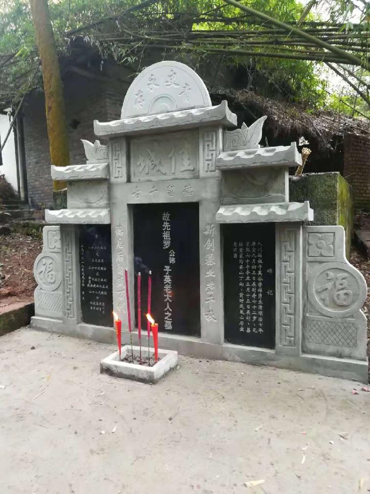 | 配偶信息 | 生顺治八年(公元1651年,辛卯)七月初三申时,殁康熙三十五年(公元1696年,丙子)十一月廿五日亥时,葬杨家冲寅山申向。年四十五。 子五智倫 圣 贤 䀪 文,女一适刘魁文英父子往川,居开江县任市镇秦家坝。 |