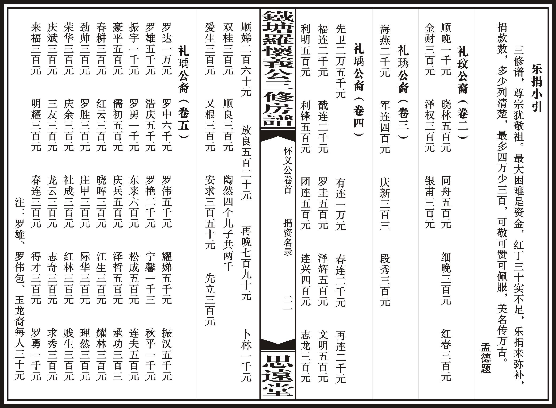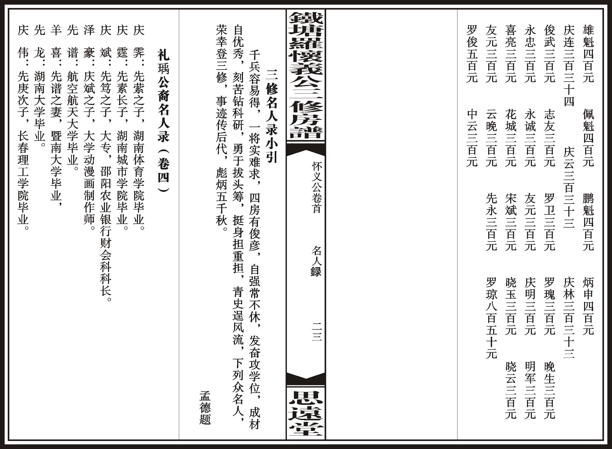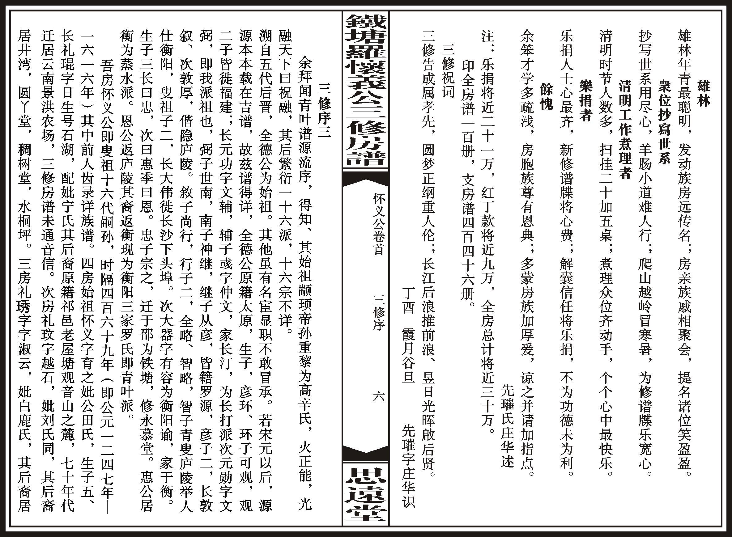 《铁塘罗氏四房怀义公三修房谱 卷首》